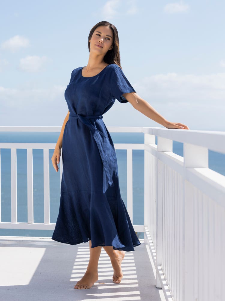 Robe mi-longue élégante Vintage 100% lin, caractéristiques de la mode